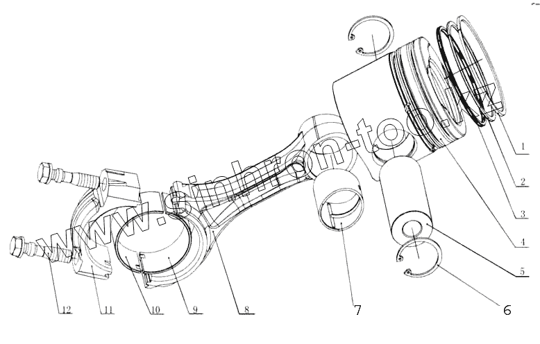 Каталог запасных частей к технике: Yuchai YC6M220G (M3020). M3000-1004000 Поршень и шток поршня