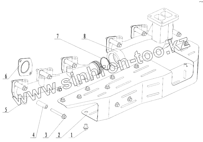 Каталог запасных частей к технике: Yuchai YC6M220G (M3020). M3000-1008200A Детали выпускного коллектора