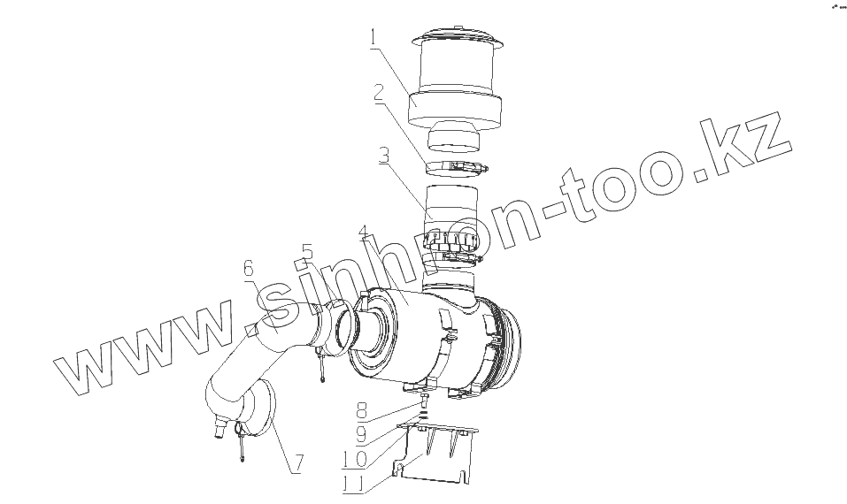 Каталог запасных частей к технике: Yuchai YC6M220G (M3020). M3015-1109000 Воздухоочиститель