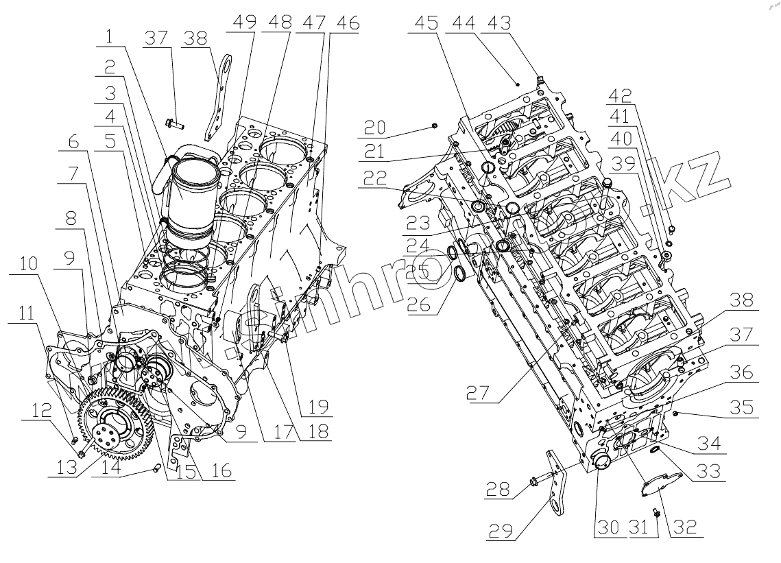 Каталог запасных частей к технике: Yuchai YC6M340-20. M35L1-1002000/09 Cylinder block assembly