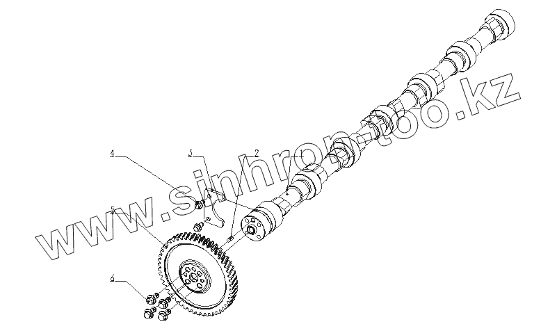 Каталог запасных частей к технике: Yuchai YC6M390-30 (M6000). M5000-1006000 Распределительный вал в сборе