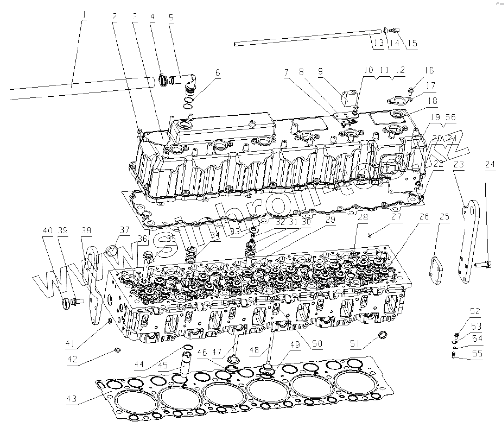 Каталог запасных частей к технике: Yuchai YC6MK320N-50. MY6MA-1003000/02 Cylinder Head Assembly