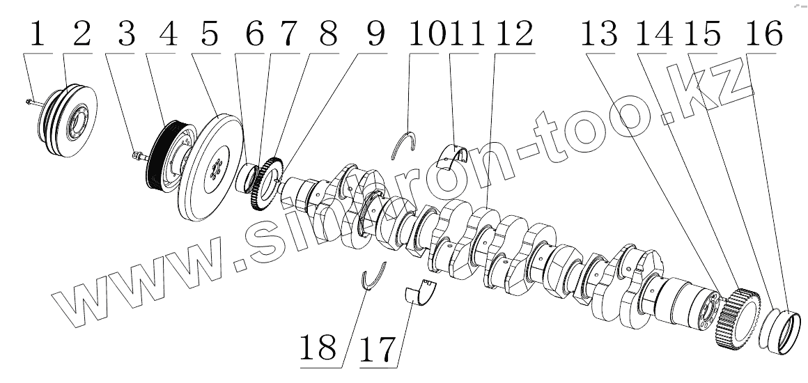 Каталог запасных частей к технике: Yuchai YC6MK320N-50. MY6MA-1005000/03 Crankshaft Damper Assembly