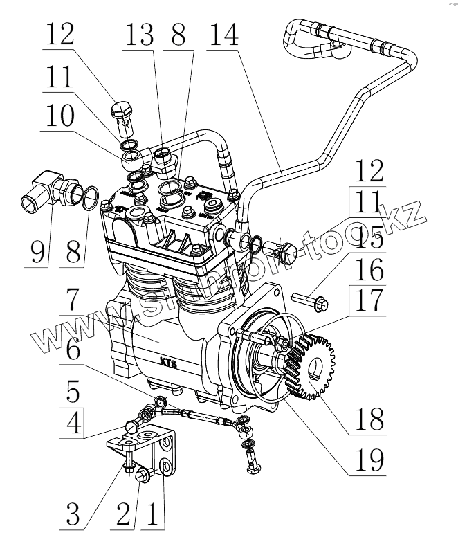 Каталог запасных частей к технике: Yuchai YC6MK340N-50. MN70A-3509000/01 Pneumatic Air Compressor