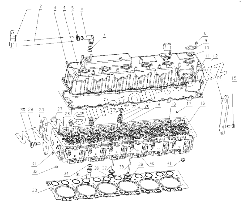 Каталог запасных частей к технике: Yuchai YC6MK340N-50. MY4YA-1003000/02 Cylinder Head Assembly