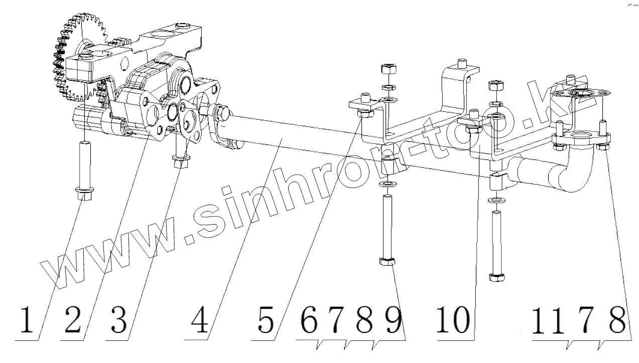 Каталог запасных частей к технике: Yuchai YC6MK375N-40. K2000-1011000/02 Oil Pump Assembly