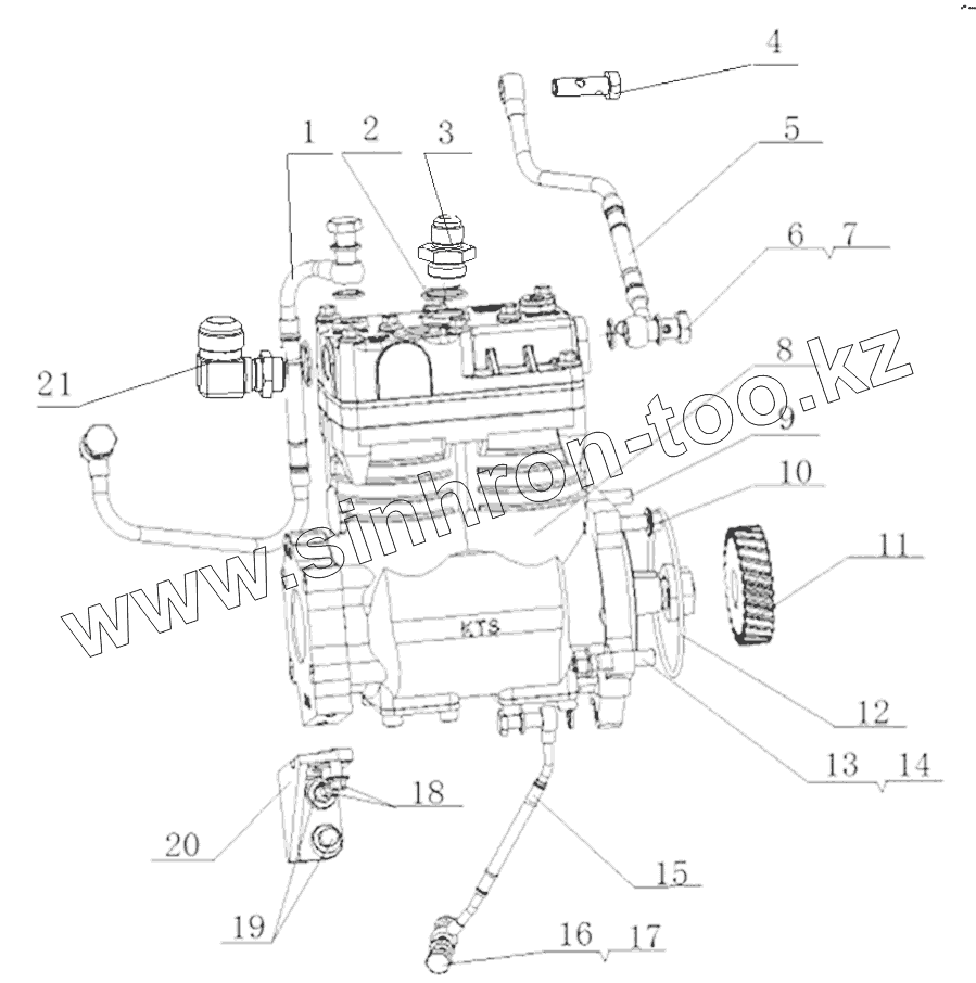 Каталог запасных частей к технике: Yuchai YC6MK375N-40. M600A-3509000/02 Pneumatic Air Compressor