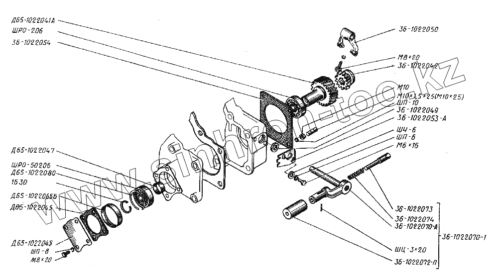 Каталог запасных частей к технике: ЮМЗ Д-65. Привод масляного насоса гидросистемы