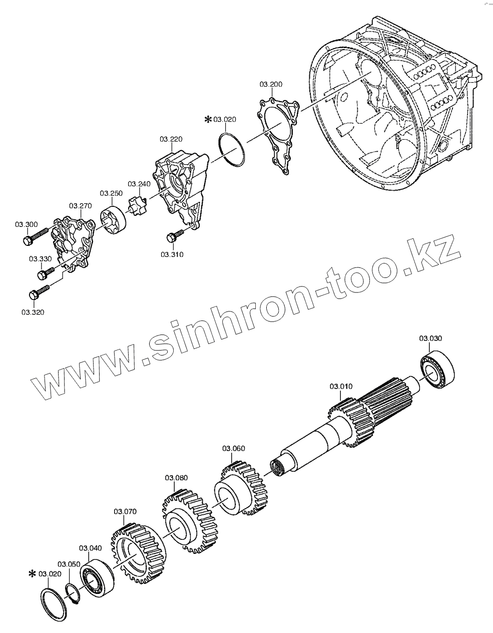 Каталог запасных частей к технике: ZF КПП 16S1825TO. ВАЛ ПРОМЕЖУТОЧНЫЙ