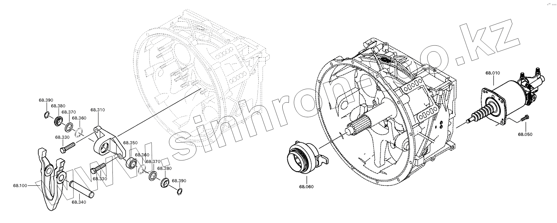 Каталог запасных частей к технике: ZF КПП ZF 16S1820. Механизм выключения сцепления