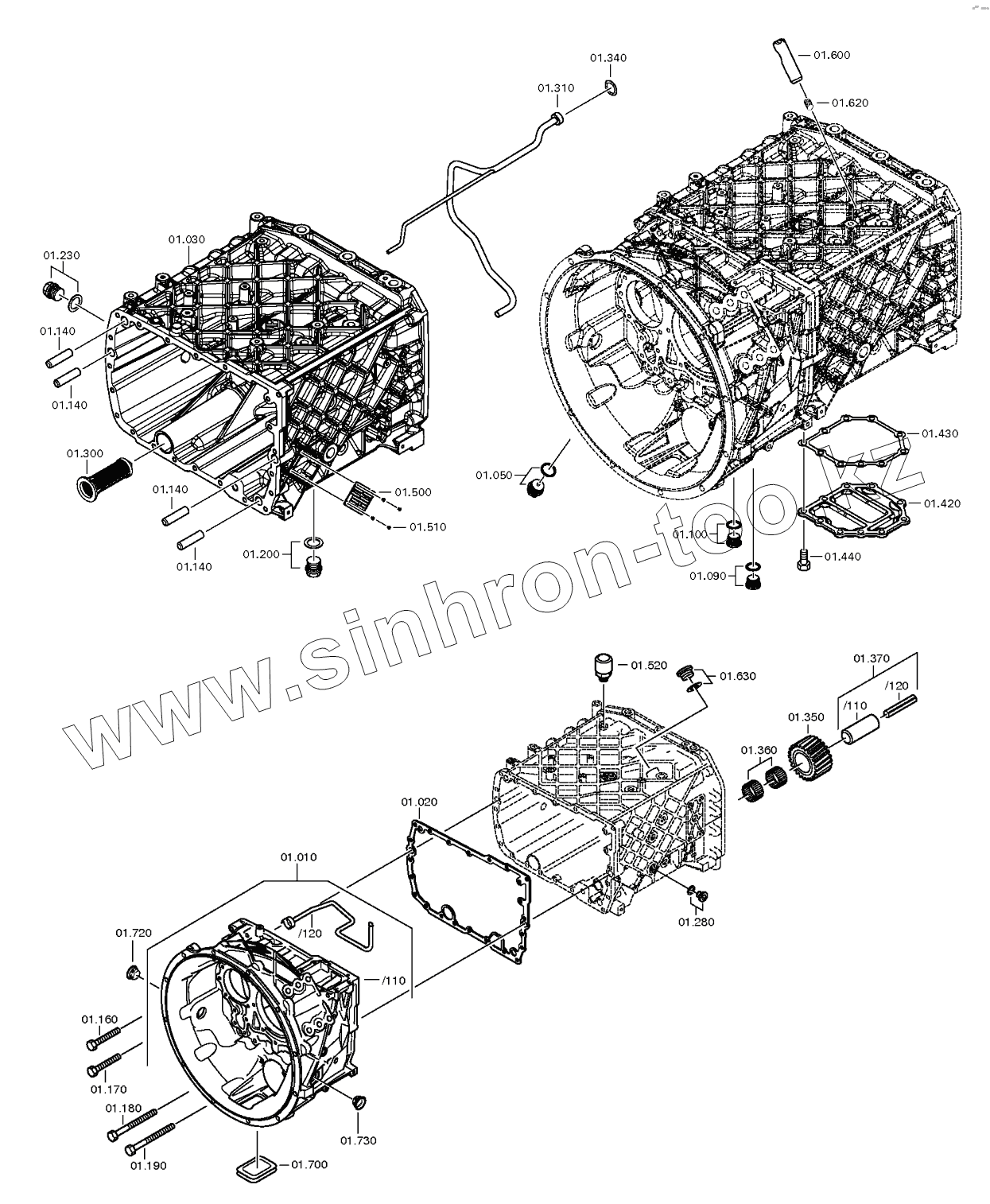 Каталог запасных частей к технике: ZF КПП ZF 16S1820. Картер КП