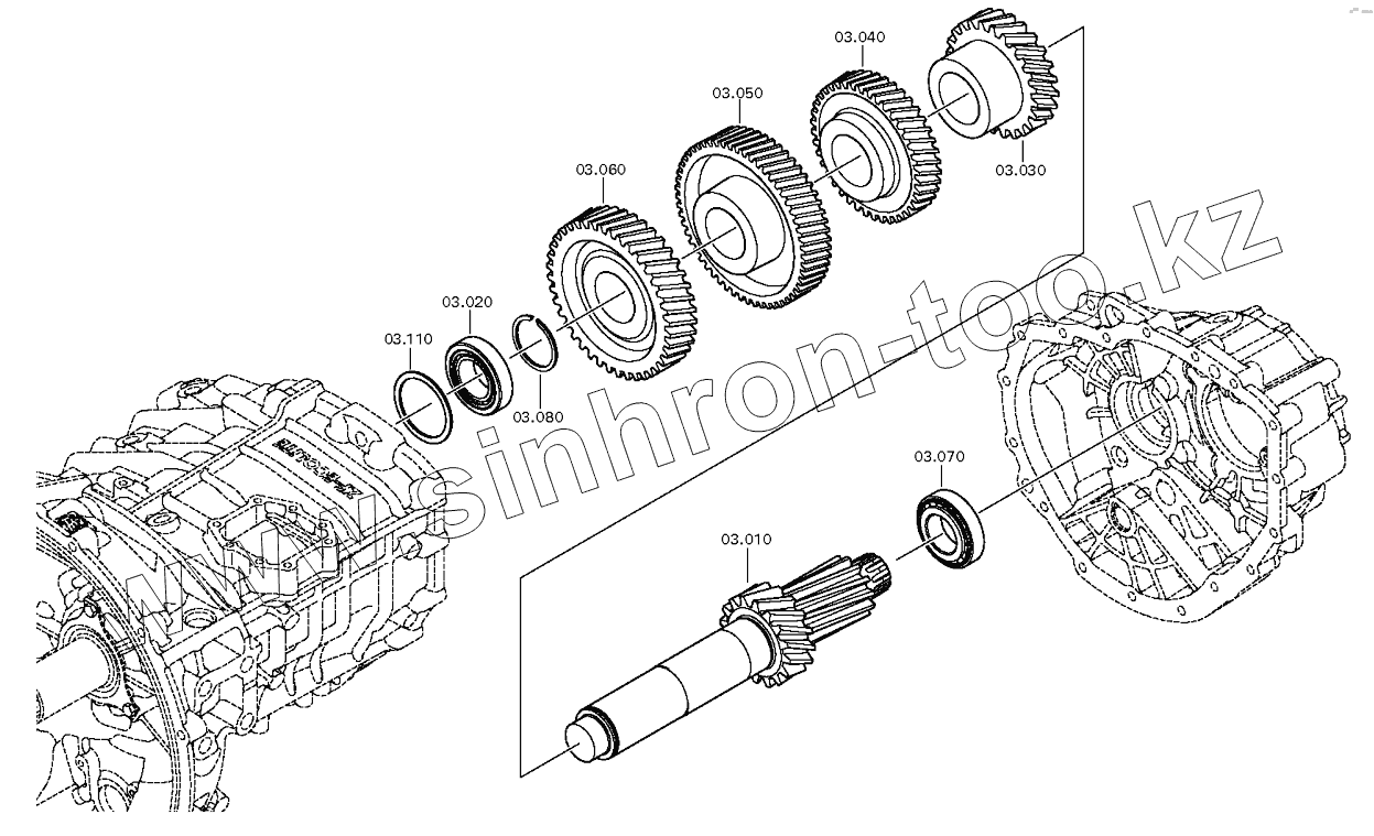 Каталог запасных частей к технике: ZF КПП ZF 6S1000TO. Вал промежуточный