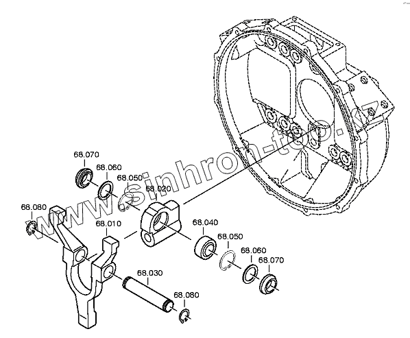 Каталог запасных частей к технике: ZF КПП ZF 9S1310 TO. CLUTCH RELEASE DEVICE 6060.168.001