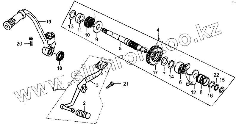 Каталог запасных частей к технике: ЗиД Двигатель 163FML-2. Ножной стартер и педаль переключения