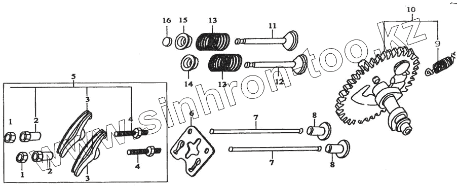 Каталог запасных частей к технике: ЗиД Двигатель 168F, 168F-2. Вал кулачковый с коромыслом клапана