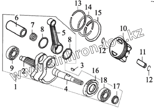 Каталог запасных частей к технике: ЗиД Двигатель 185 MQ. Коленчатый вал и поршень