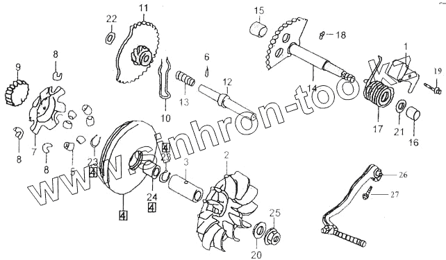 Каталог запасных частей к технике: ЗиД Двигатель 1P52QMI-2B. Шкив ведущий, привод кикстартера