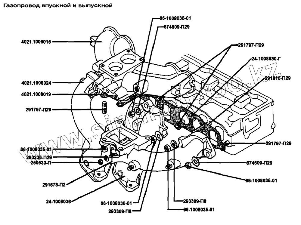 Каталог запасных частей к технике: ЗМЗ-402.10 (Евро 3). Газопровод впускной и выпускной