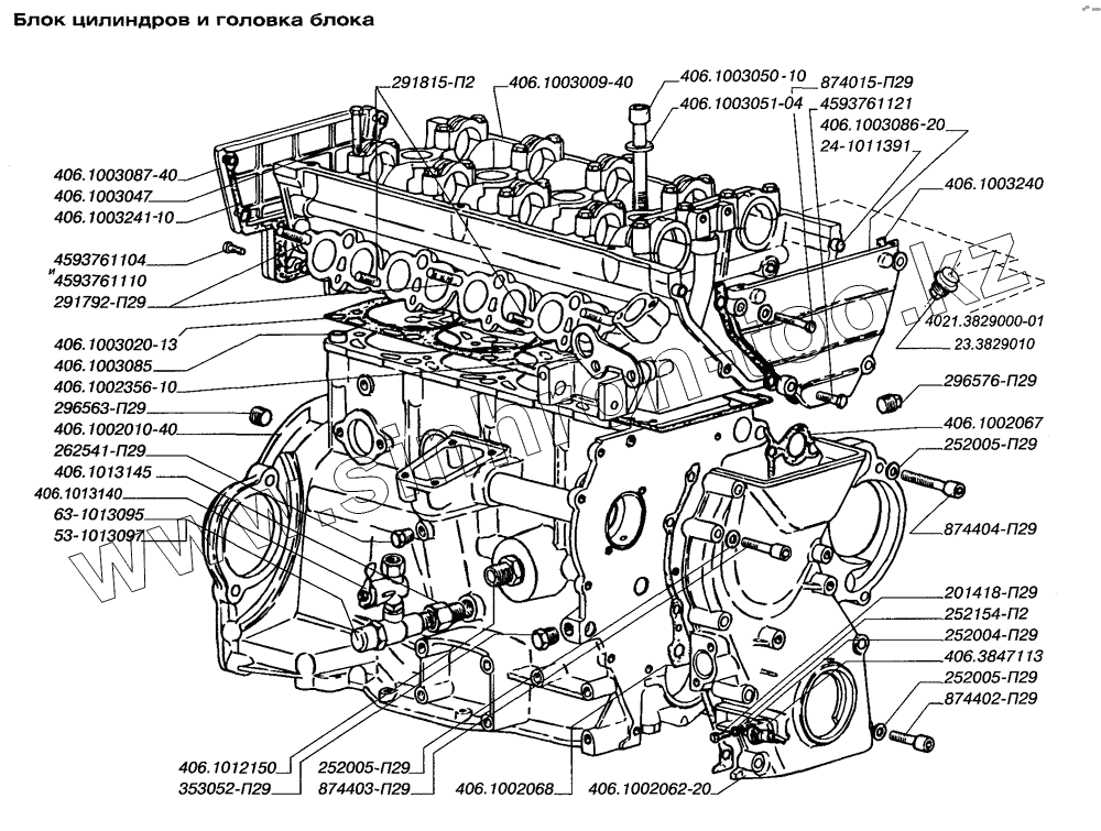 Каталог запасных частей к технике: ЗМЗ-40524.10 (Евро 3). Блок цилиндров и головка блока