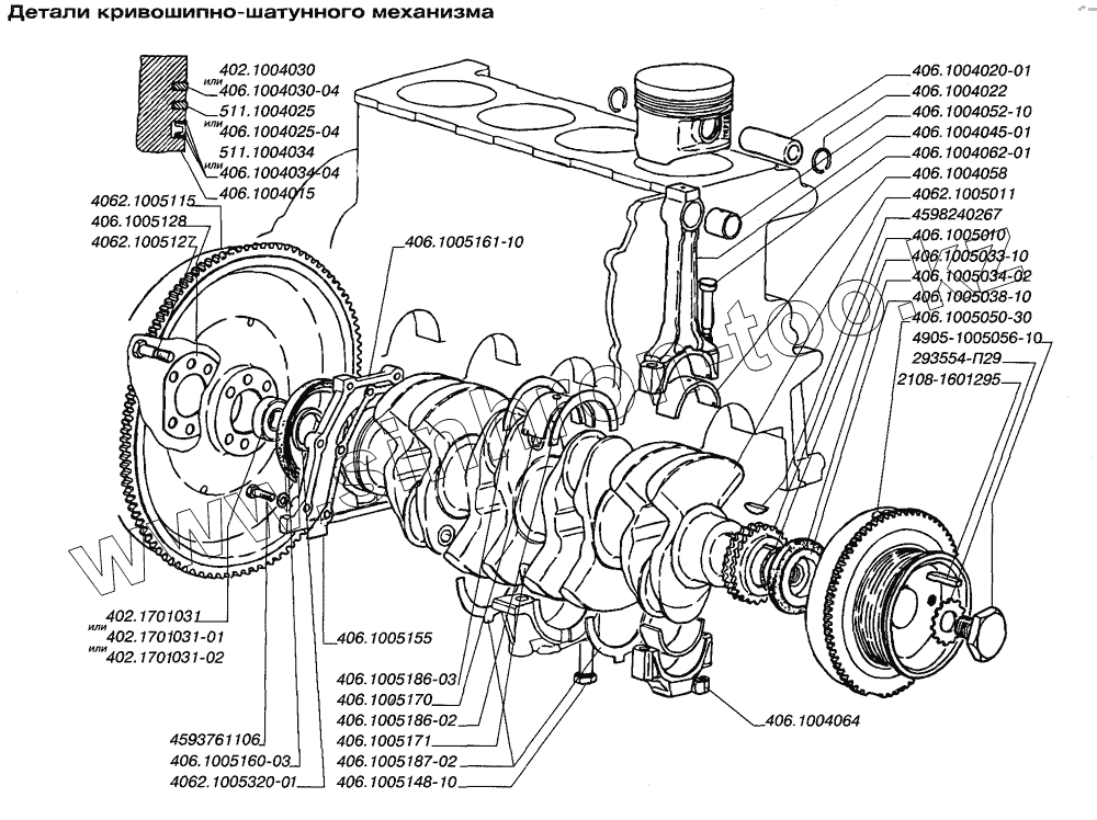 Каталог запасных частей к технике: ЗМЗ-40524.10 (Евро 3). Поршни и шатуны