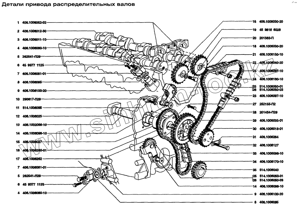 Каталог запасных частей к технике: ЗМЗ-4062.10. Детали привода распределительных валов