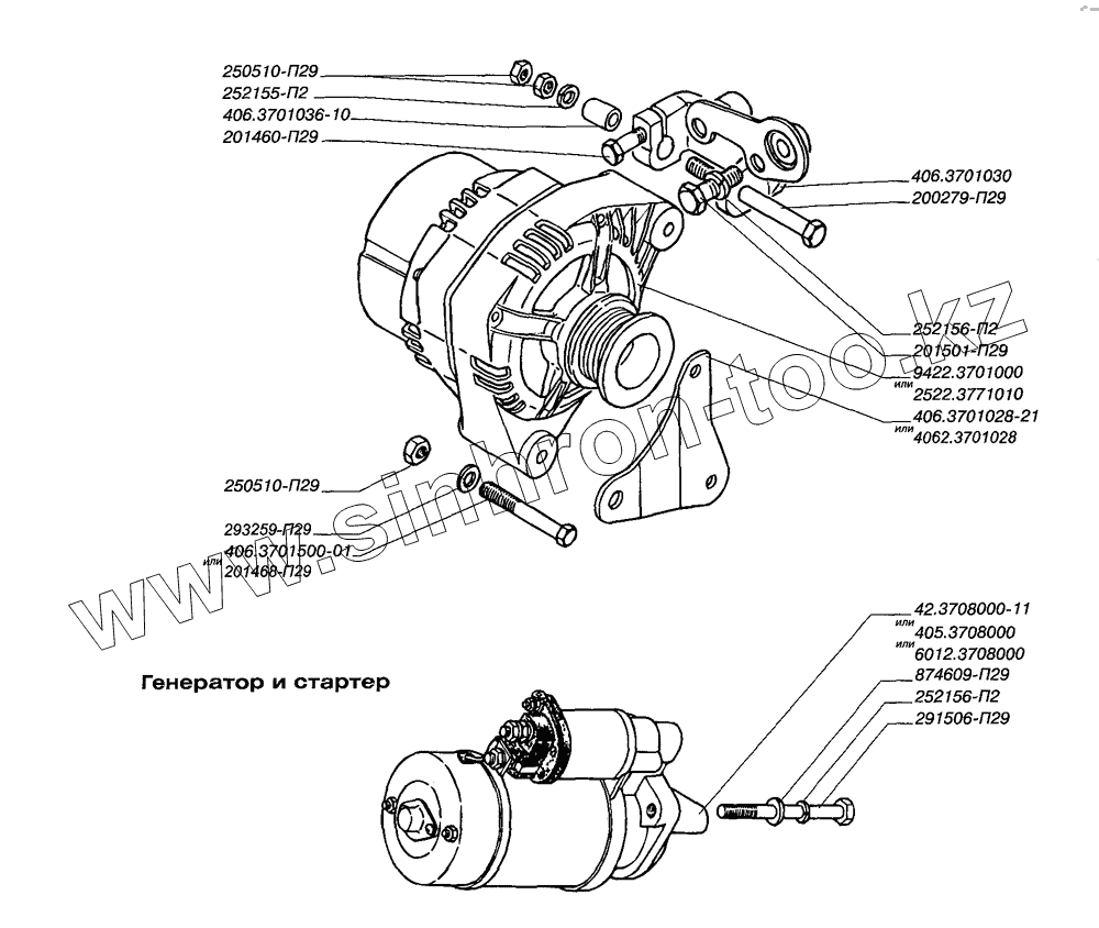 Каталог запасных частей к технике: ЗМЗ-4062.10. Генератор и стартер