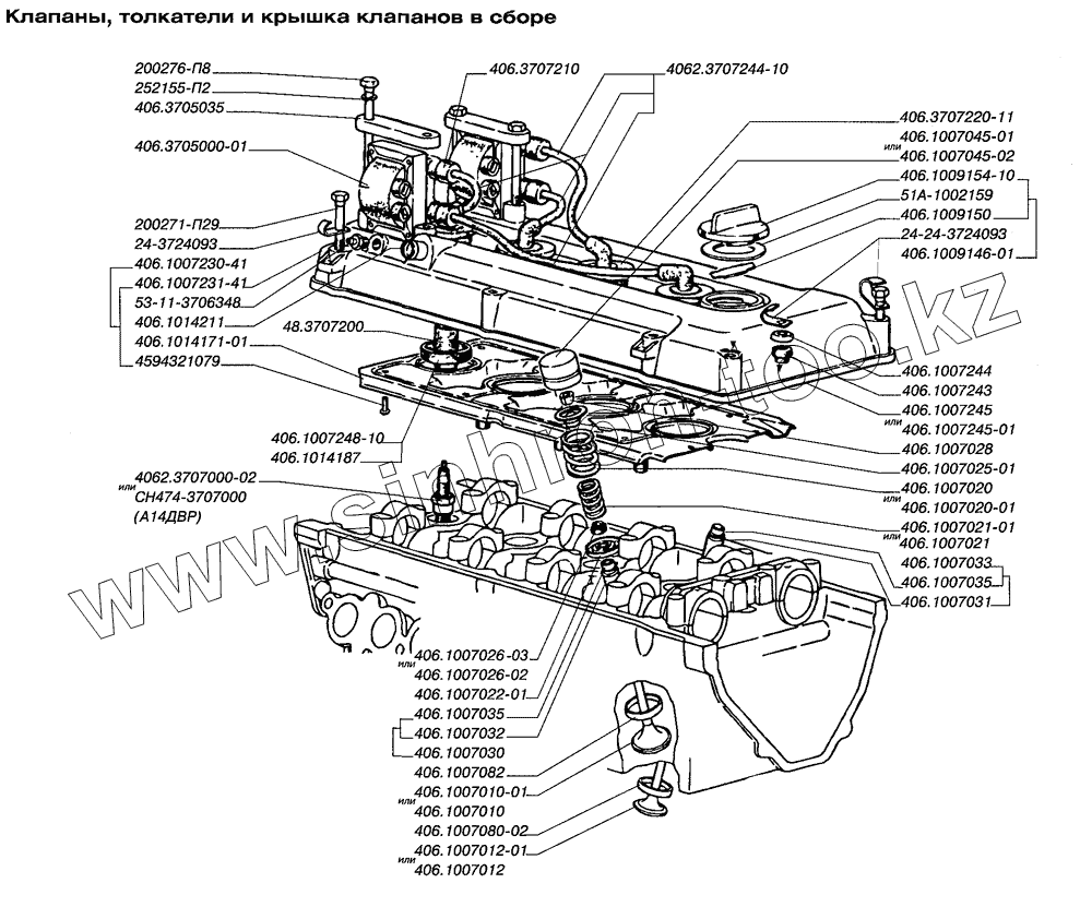 Каталог запасных частей к технике: ЗМЗ-4062.10. Клапаны, толкатели клапанов