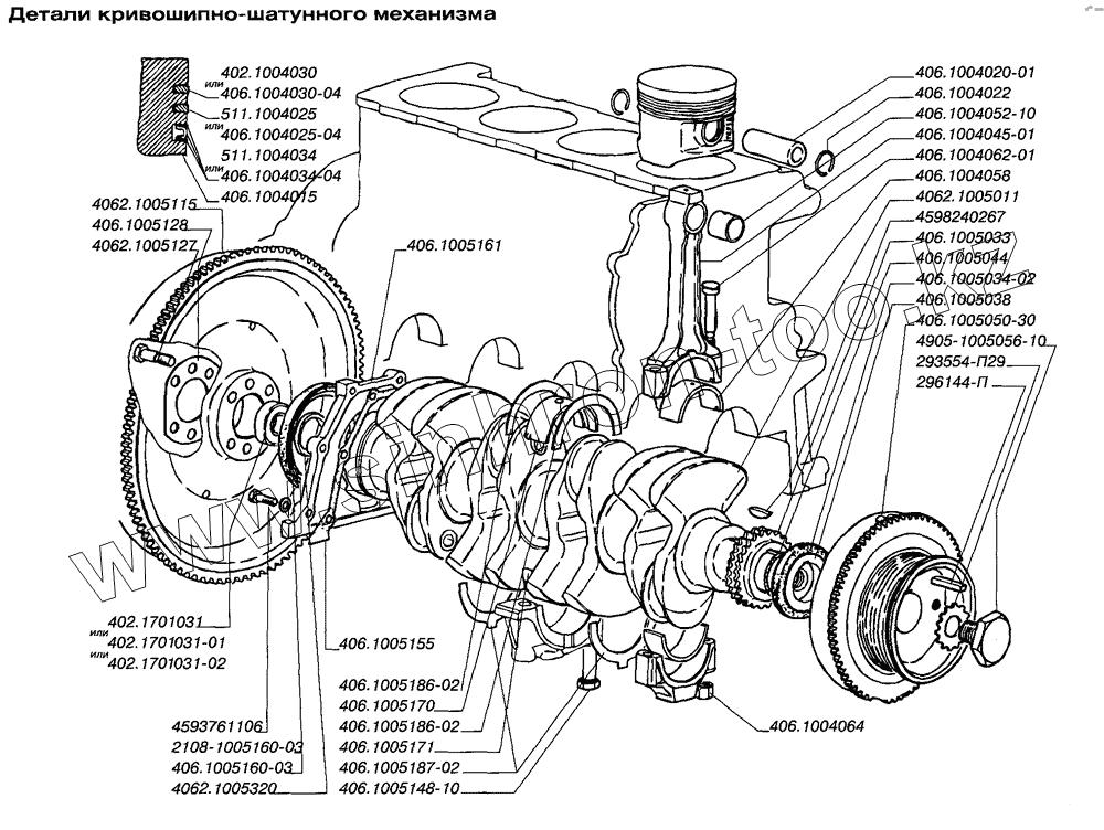Каталог запасных частей к технике: ЗМЗ-4062.10. Поршни и шатуны