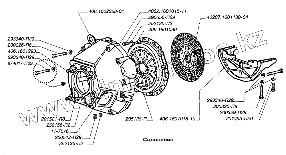 Каталог запасных частей к технике: ЗМЗ-4062.10. Сцепление
