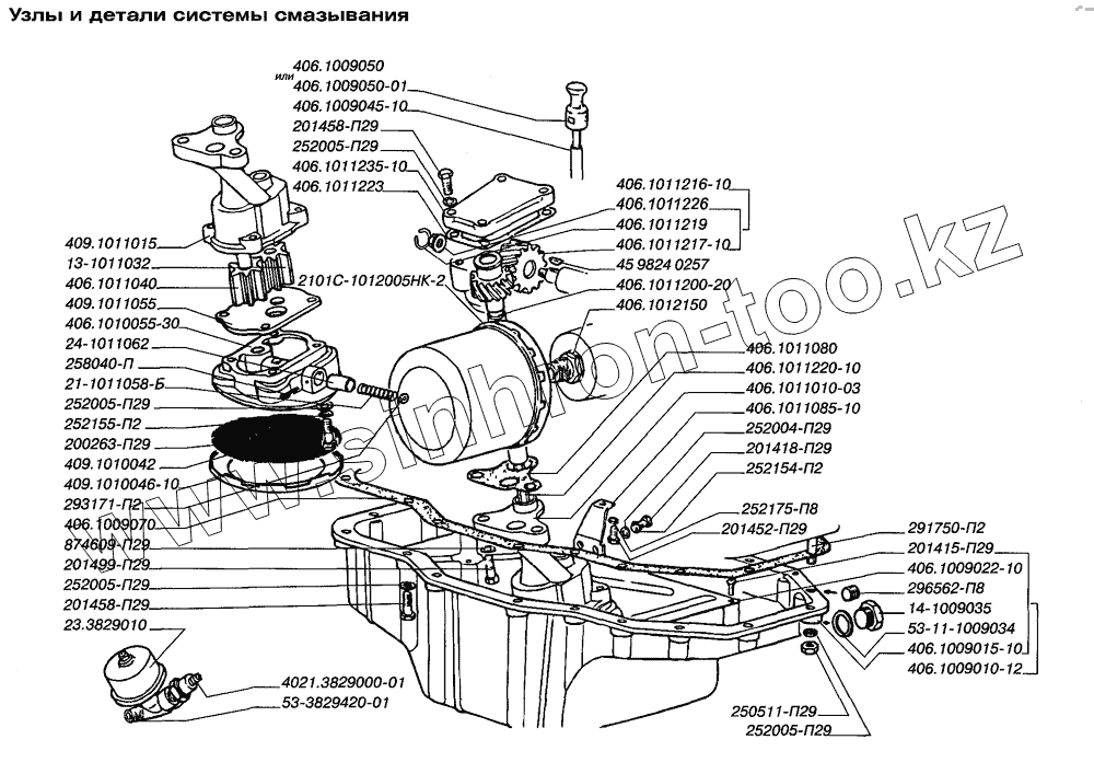 Каталог запасных частей к технике: ЗМЗ-4062.10. Узлы и детали системы смазывания