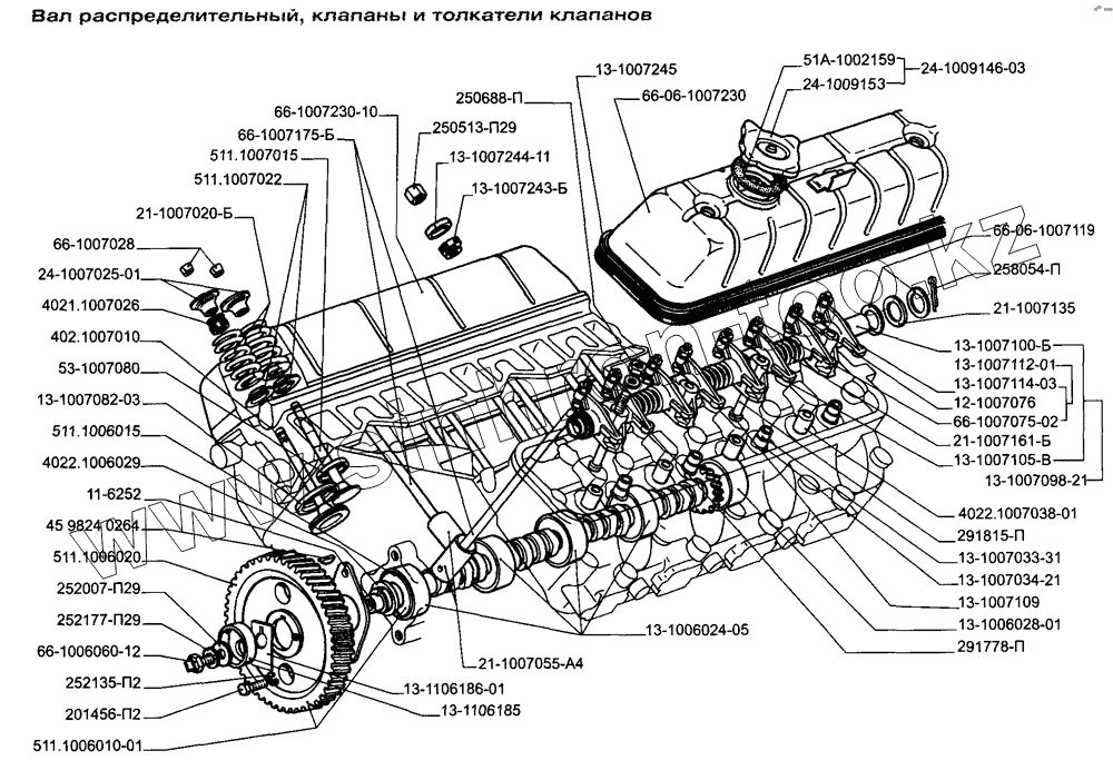 Каталог запасных частей к технике: ЗМЗ-5234.10. Вал распределительный, клапаны, толкатели клапанов