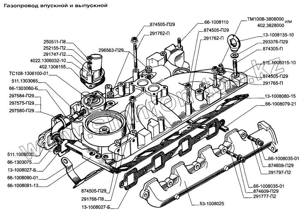 Каталог запасных частей к технике: ЗМЗ-5234.10 (Евро 3). Газопровод впускной и выпускной