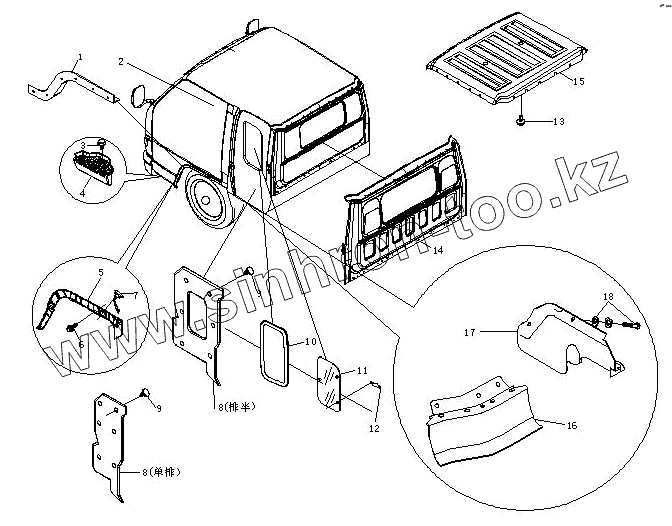 Каталог запасных частей к технике: BAW BJ 1044/1065. Крыша, задняя панель, боковины кабины