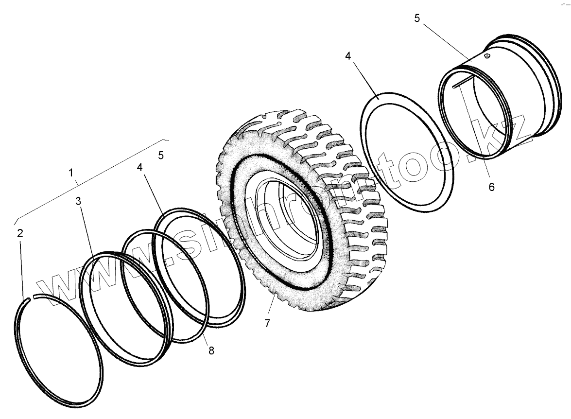 Каталог запасных частей к технике: БелАЗ 75131. Детали колес (75131-3101011);Wheels parts
