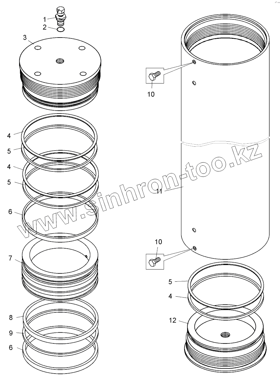 Каталог запасных частей к технике: БелАЗ 75131. Пневмогидроаккумулятор (75306-3415010);Pneumatic hydroaccumulator
