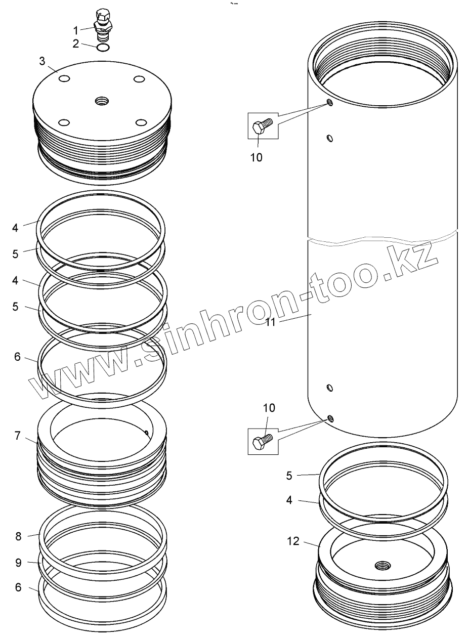 Каталог запасных частей к технике: БелАЗ 75131. Пневмогидроаккумулятор (75450-3415010);Pneumatic hydroaccumulator