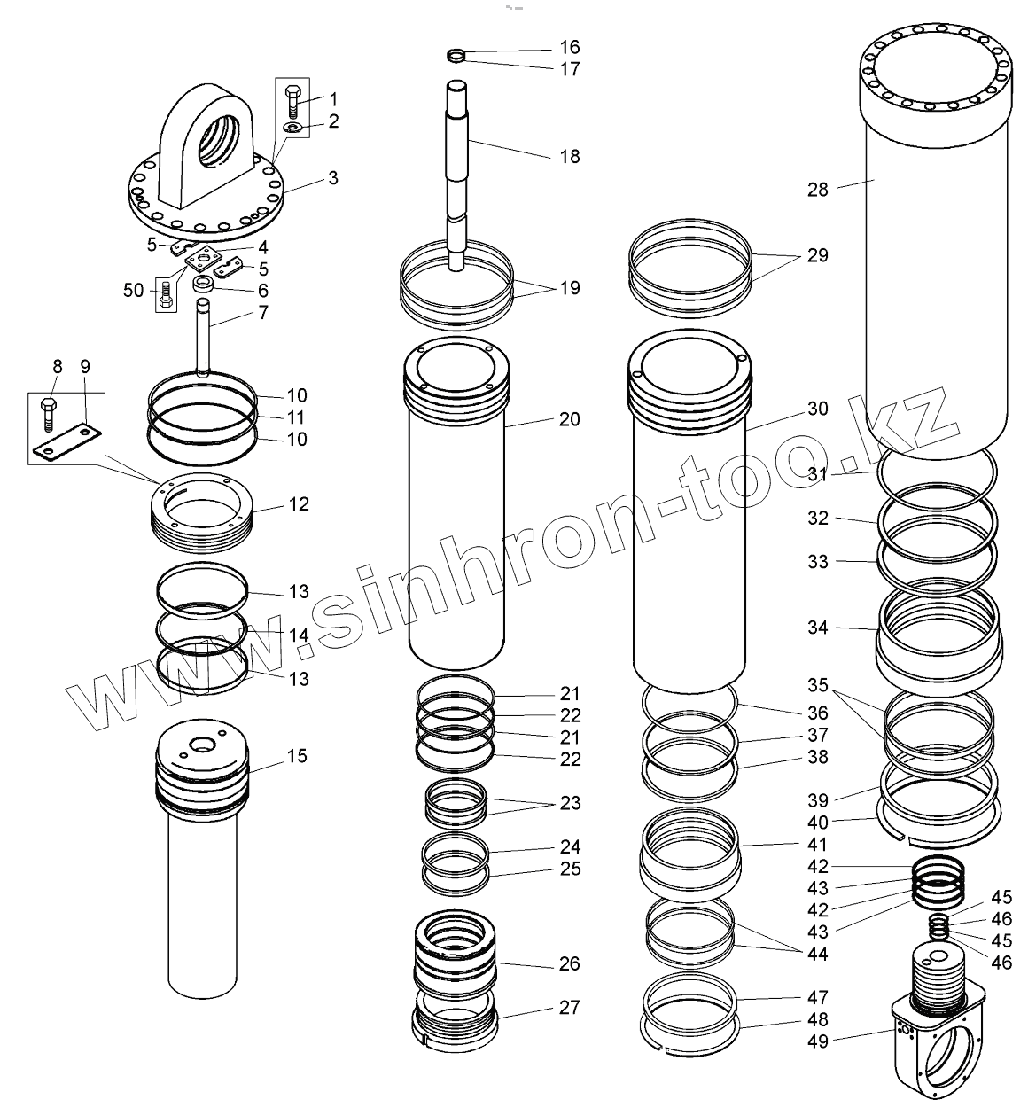 Каталог запасных частей к технике: БелАЗ 75131. Цилиндр опрокидывающего механизма (75131-8603010);Hoist cylinders