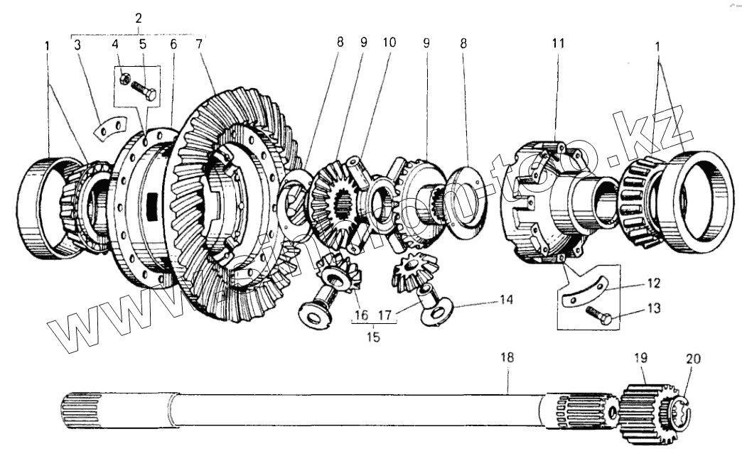Каталог запасных частей к технике: БелАЗ 75450. Дифференциал и полуоси;Differential and axle shafts