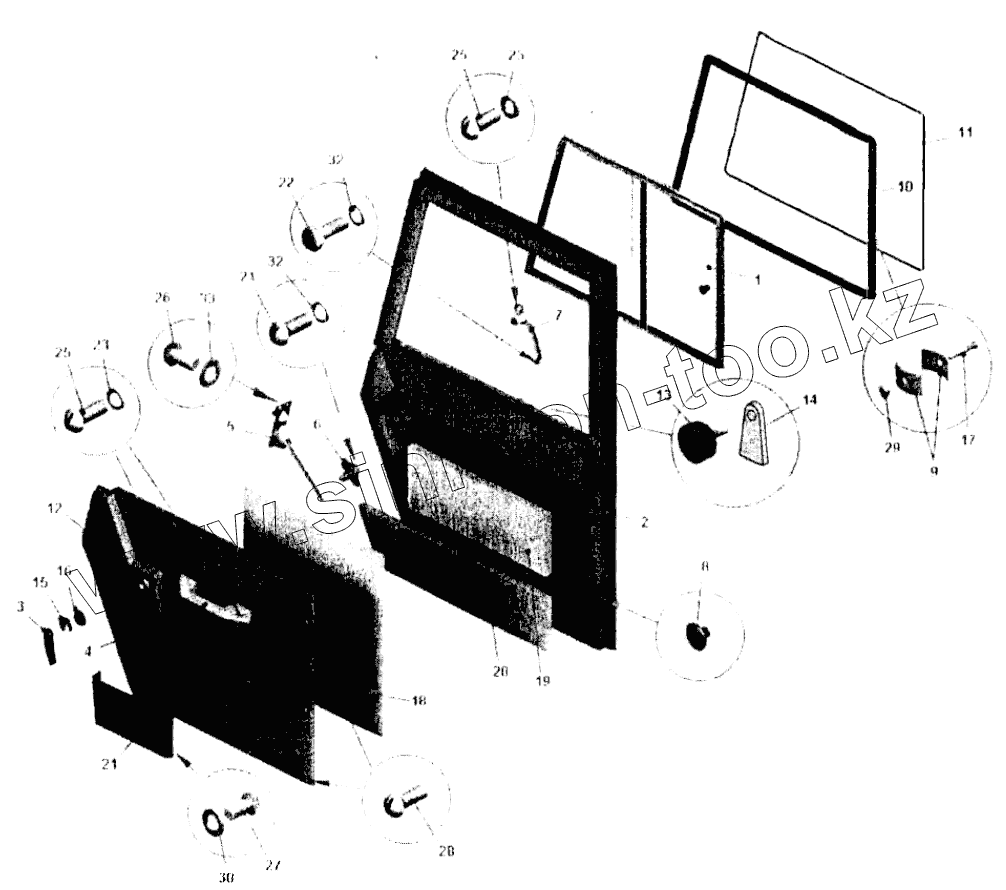 Каталог запасных частей к технике: БелАЗ 75450. Дверь кабины;Door of cabin