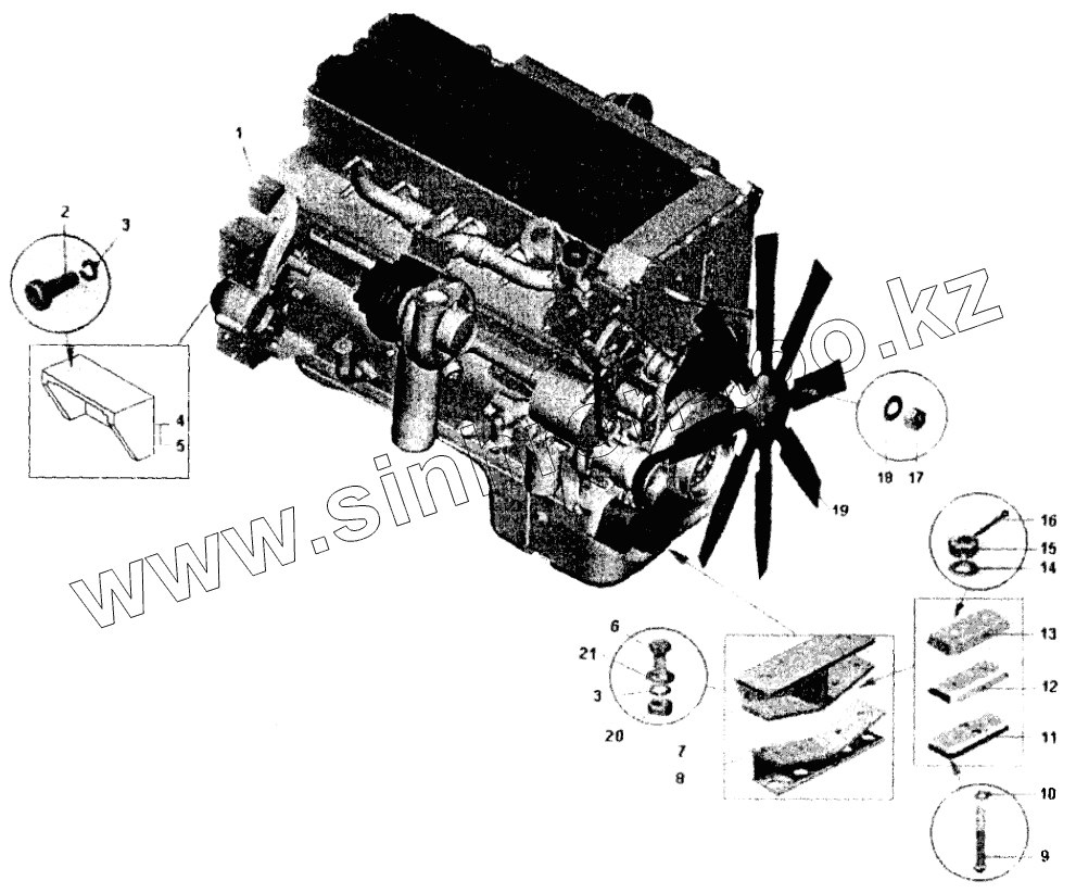 Каталог запасных частей к технике: БелАЗ 75450. Двигатель с кронштейнами;Engine with brackets