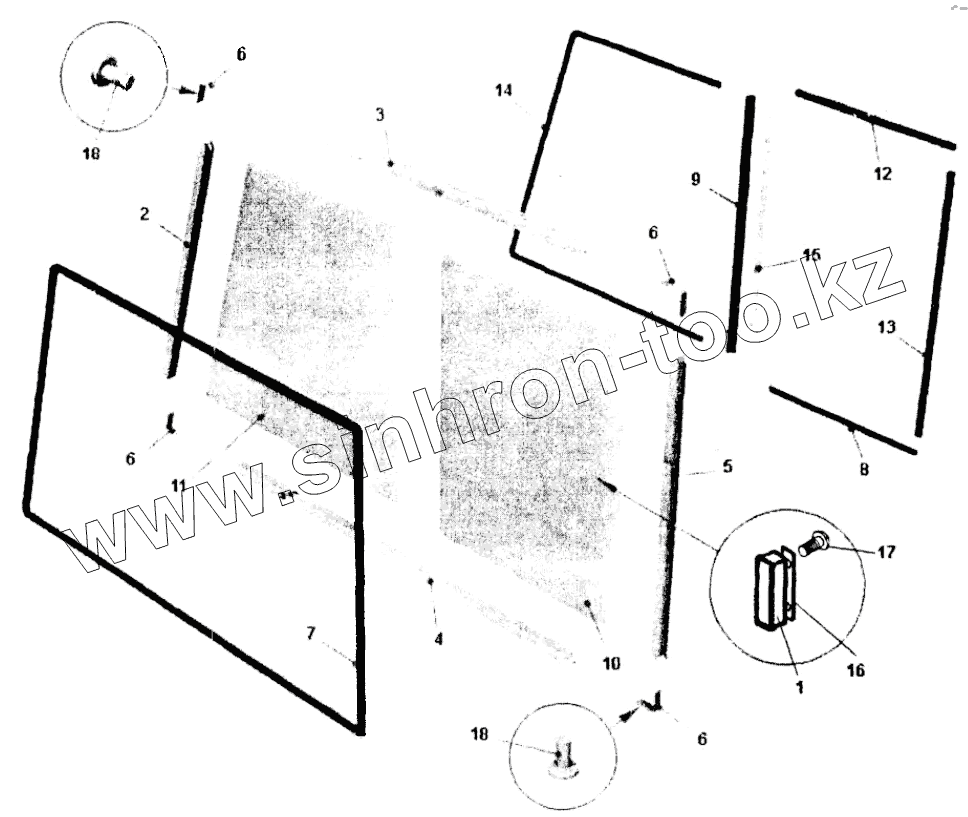 Каталог запасных частей к технике: БелАЗ 75450. Окно раздвижное;Sliding window