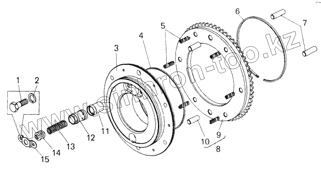 Каталог запасных частей к технике: БелАЗ 75450. Поршень фрикциона;Piston of friction clutch