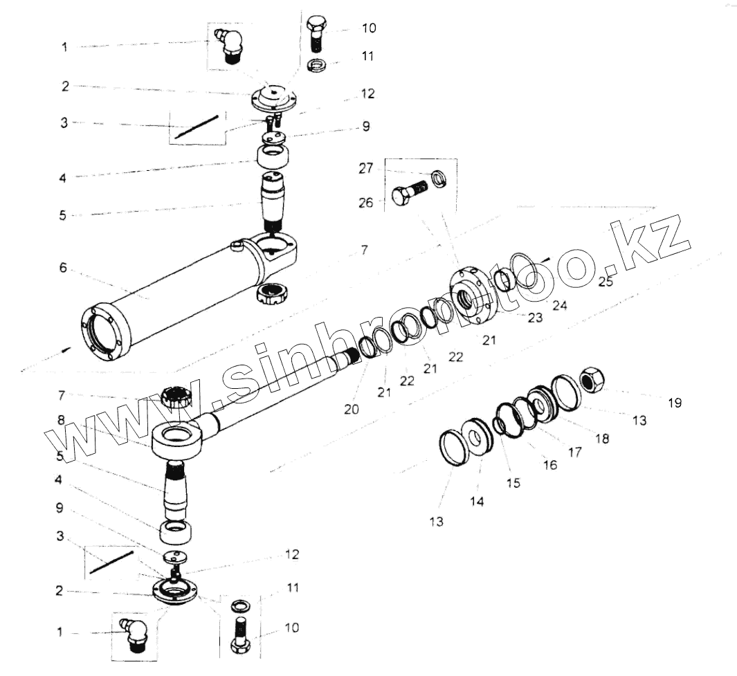 Каталог запасных частей к технике: БелАЗ 75450. Цилиндр поворота;Turning cylinder