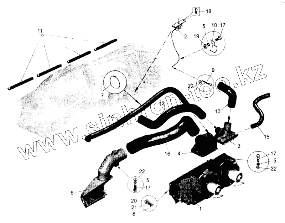 Установка трубопроводов отопителя кабины;Mounting of cabin heater pipelines