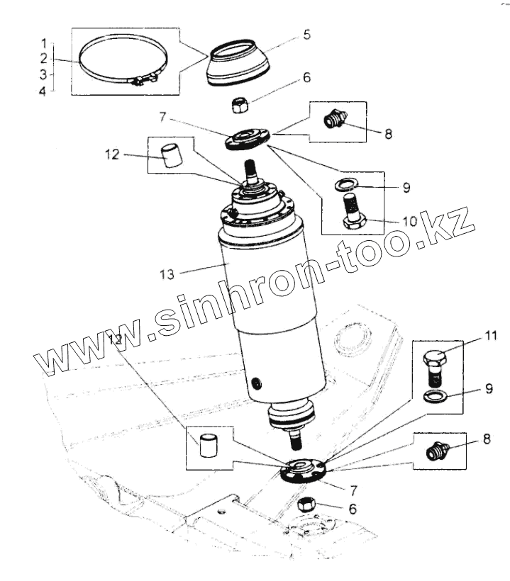 Установка цилиндра передней подвески;Front suspension cylinder