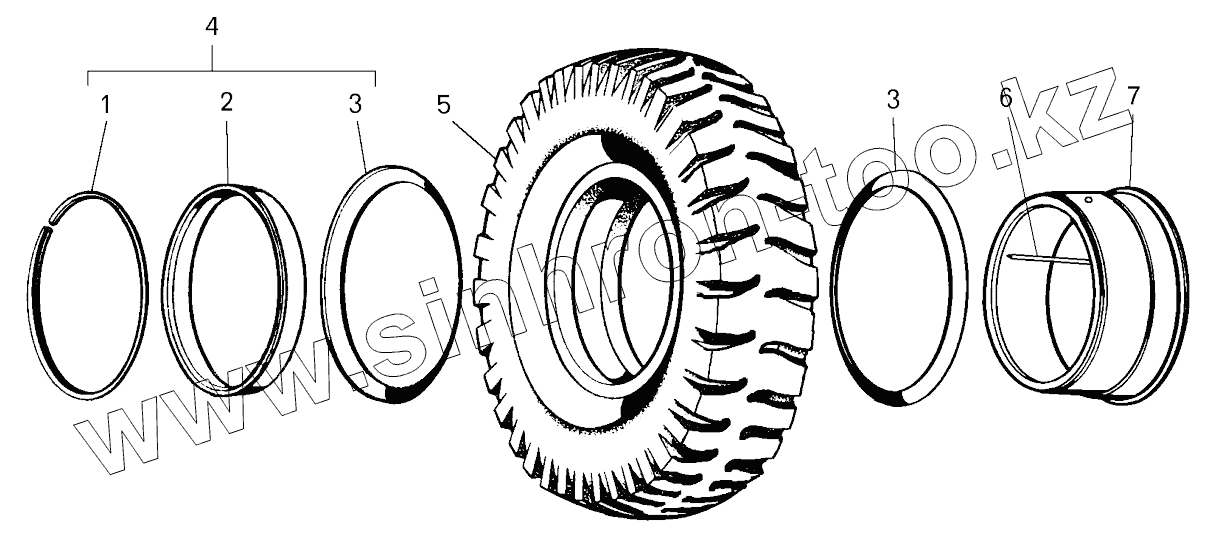 Каталог запасных частей к технике: БелАЗ 7547, 75473. Детали колес;Wheel parts