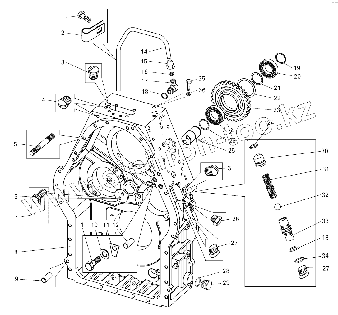 Картер гидромеханической передачи;Hydromechanical gear casing