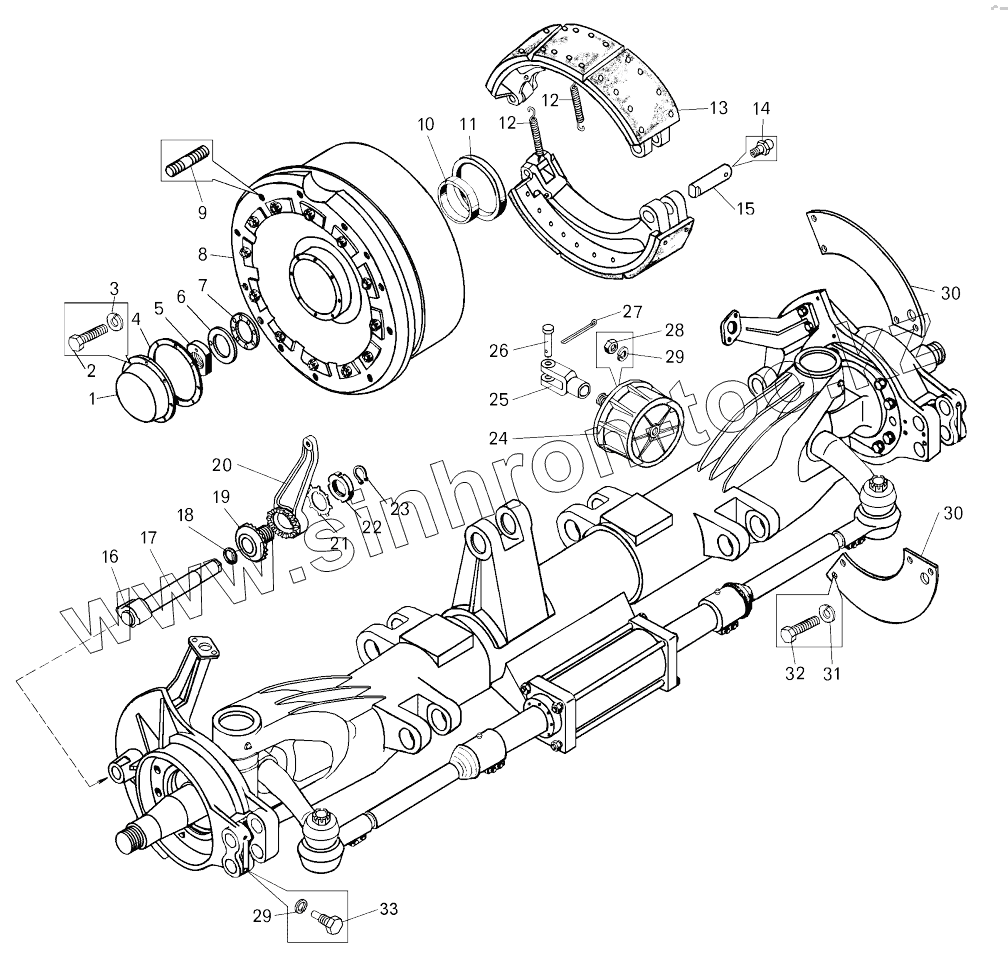 Каталог запасных частей к технике: БелАЗ 7547, 75473. Передняя ось;Front axle