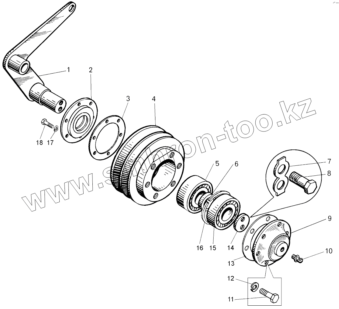 Каталог запасных частей к технике: БелАЗ 7547, 75473. Ролик натяжной;Belt idler