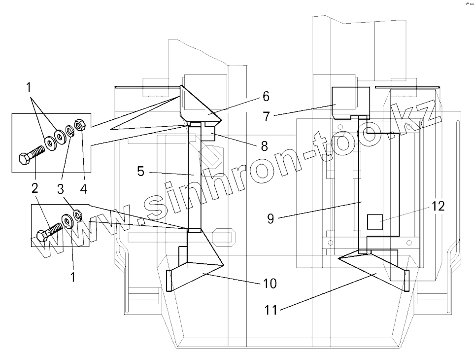 Каталог запасных частей к технике: БелАЗ 7547, 75473. Установка брызговиков;Mounting of mud flaps